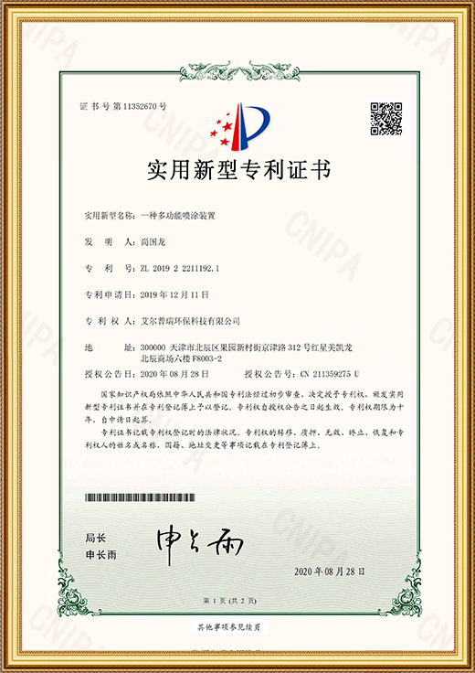 實(shí)用新型專利證書(一種多功能噴涂裝置)
